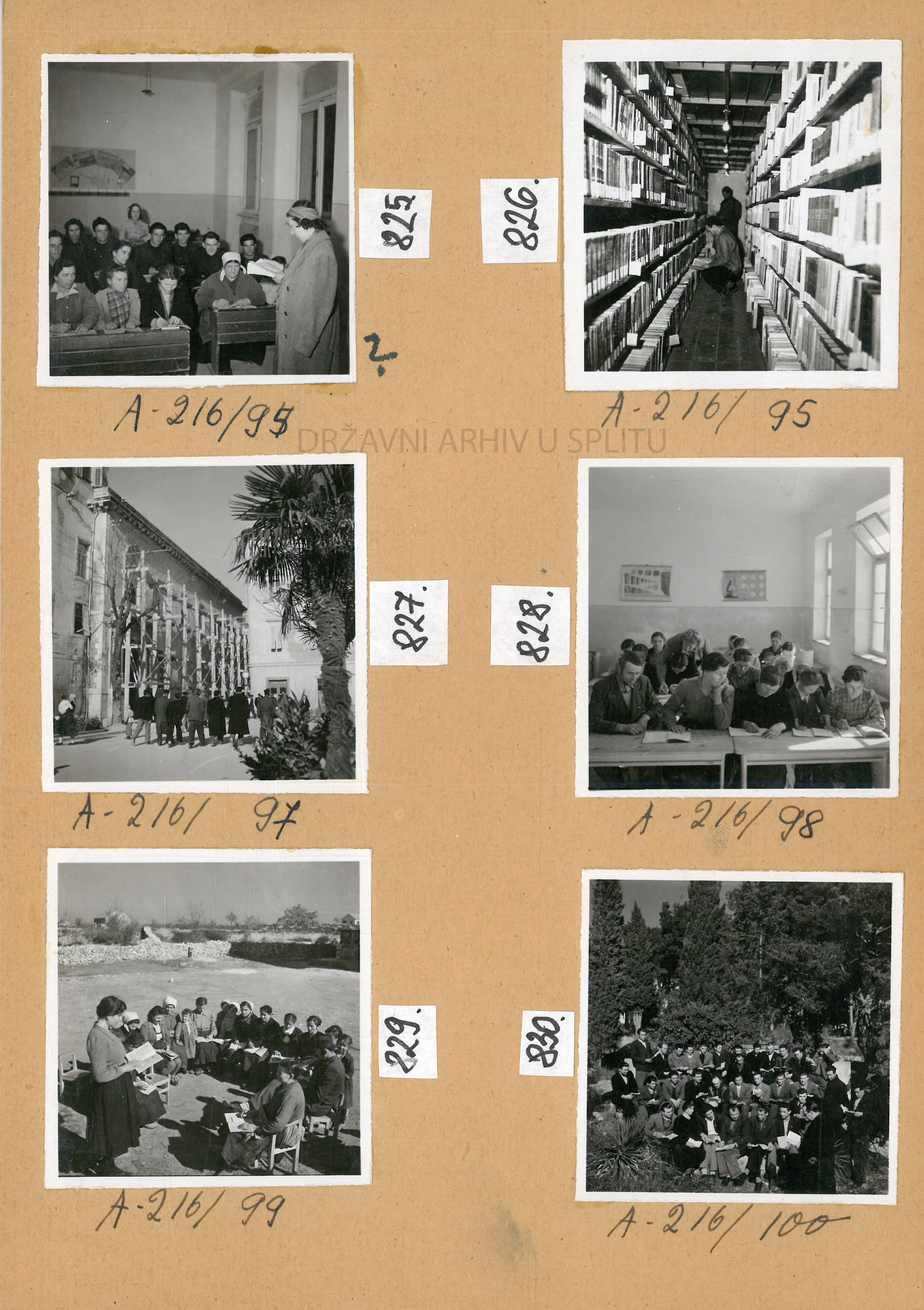 U sklopu Zbirke fotografija, HR-DAST-193 postoji posebna serija fotografija koja se odnosi na tečajeve i škole u kojoj ima 353 fotografija iz 1949. g. koje se odnose na održavanje analfabetskih tečajeva širom Hrvatske – većinom u prirodi (Kninsko Polje, Imotski, Proložac Donji, Perušić, Benkovac, Split, Zmijavci, Blažić, Tepljuh, Biočić…) koje je organizirano fotografirala Foto služba Hrvatske Zagreb (Mažuranićev trg).