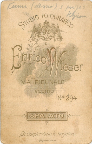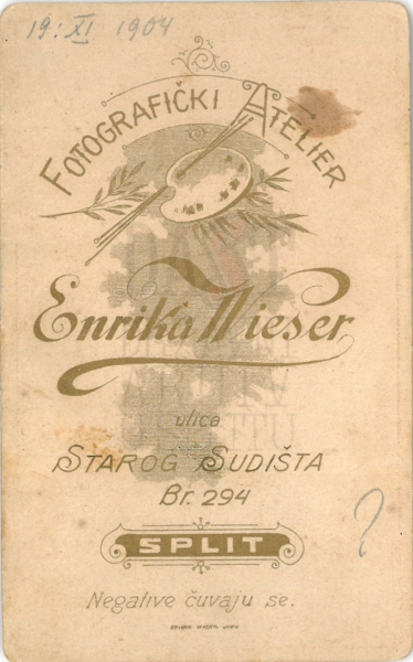 Početkom 20. stoljeća u Splitu djeluje i Henrik Wieser, vrsni fotograf koji je tijekom rada portretirao brojne Splićane: muškarce, žene, djecu, težake i istaknute građane. Portrete djevojaka često je zamućivao na rubovima da bi ostvario atmosferu romantike tipičnu za predratno razdoblje. Wieser se reklamirao kao vješt umjetnik, posebno uspješan u retušu i zasjenjivanju, stoga ne čudi što se na poleđini kartonskih predložaka njegovog ateljea nalazi slikarska paleta – time on naglašava da nije samo obrtnik već i cijenjeni umjetnik. Nakon 1914. godine u ateljeu radi njegov sin Rudolf. Wieserov atelje nalazio se u Ulici starog sudišta, u današnjoj Šubićevoj ulici.