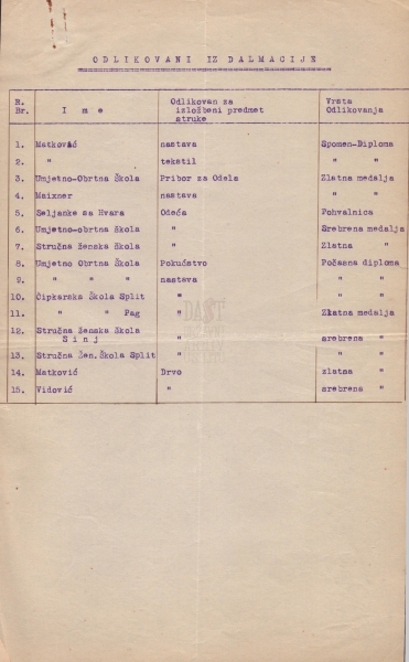 U prilogu vam donosimo originalne dokumente, dio popisa eksponata i popis nagrađenih s područja Dalmacije – svjedočanstvo jednog vremena u kojem je lokalna kreativnost pronašla svoje mjesto na velikoj svjetskoj pozornici.